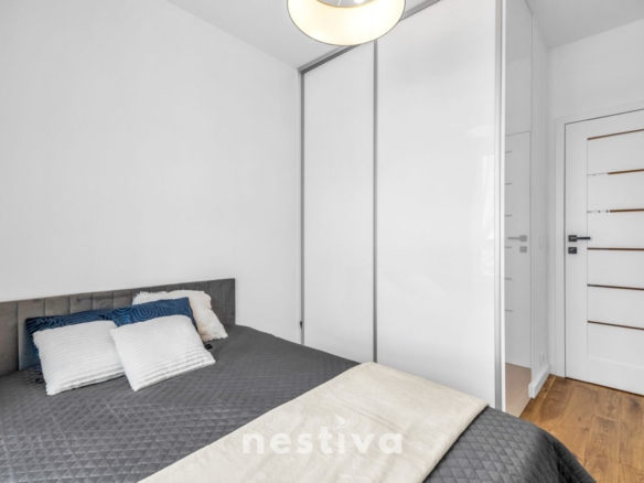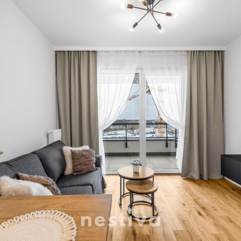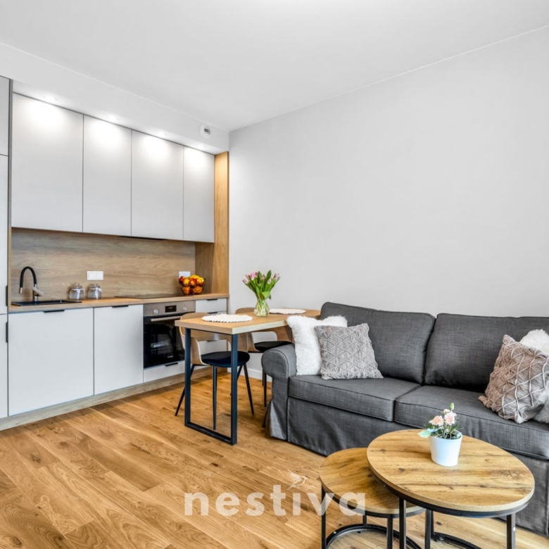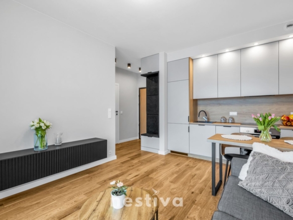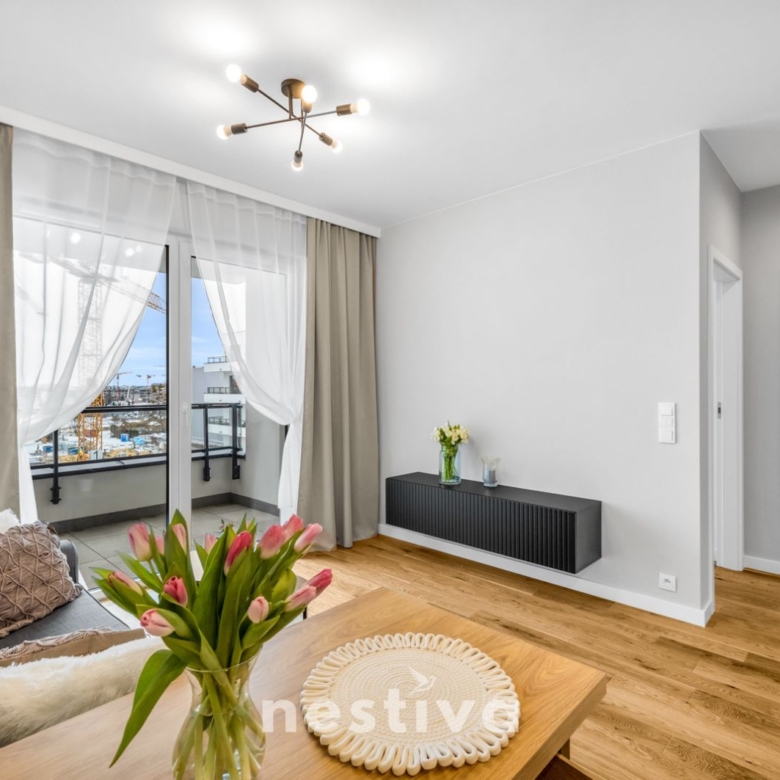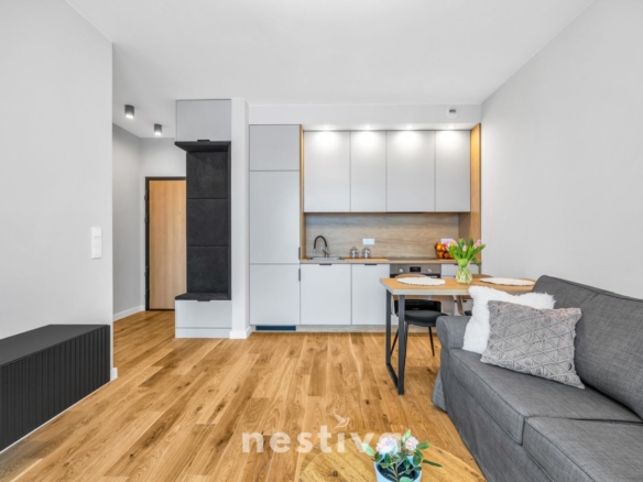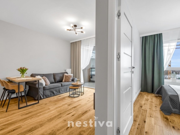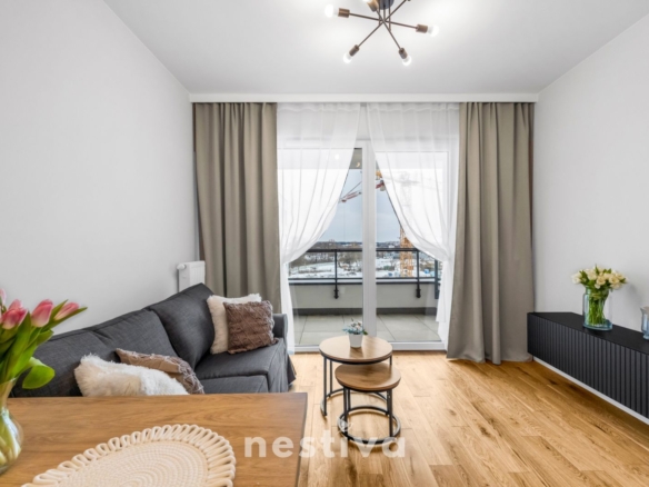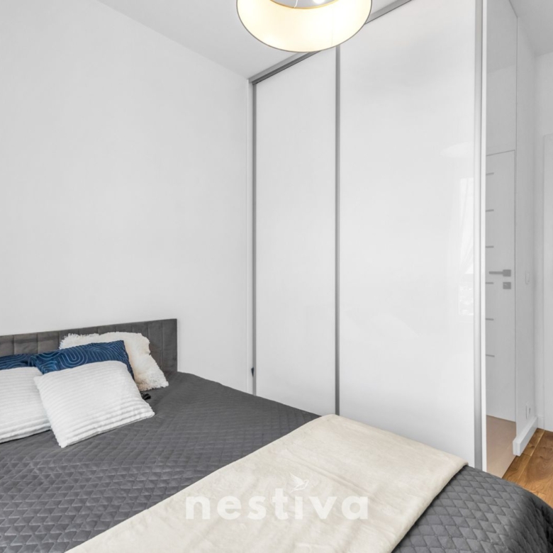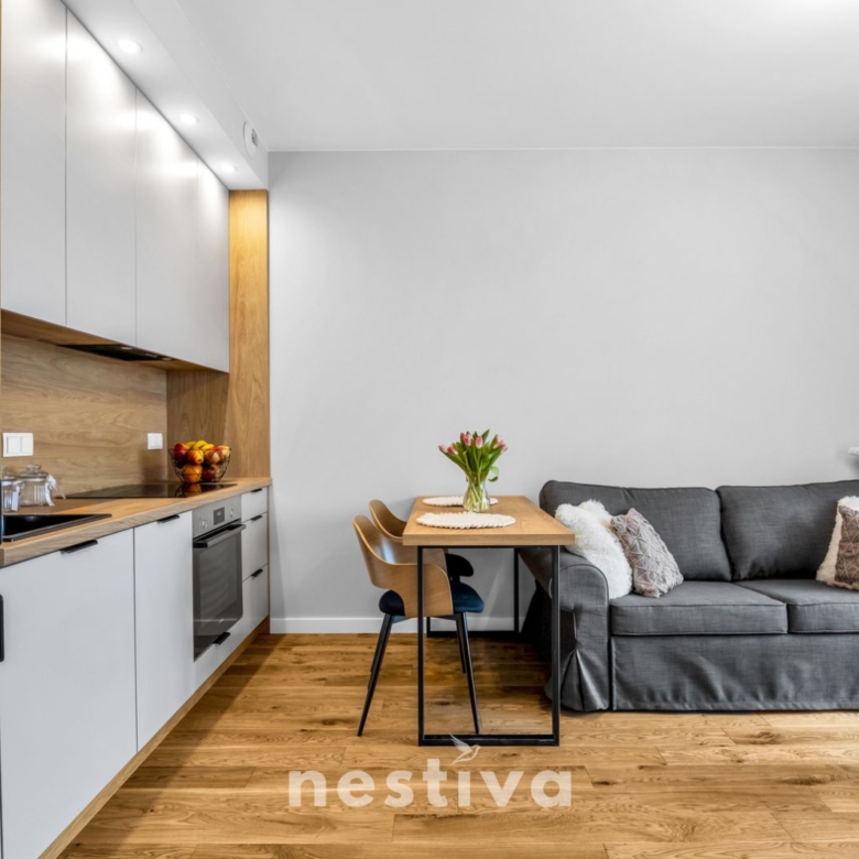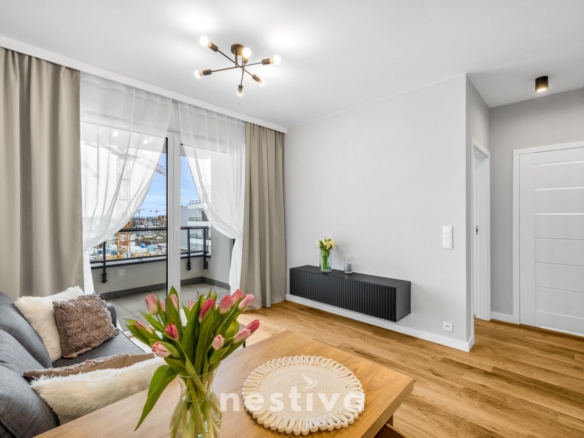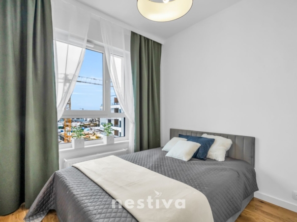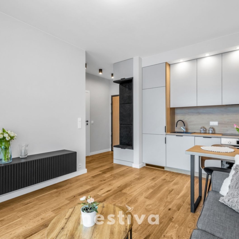Powierzchnia 32,5 m2, na którą składa się: salon z aneksem kuchennym, sypialnia, łazienka oraz balkon. Ekspozycja południowa. Mieszkanie umeblowane, wyposażone w wysokiej jakości sprzęt AGD (zmywarka, piekarnik, lodówka), gotowe do zamieszkania.