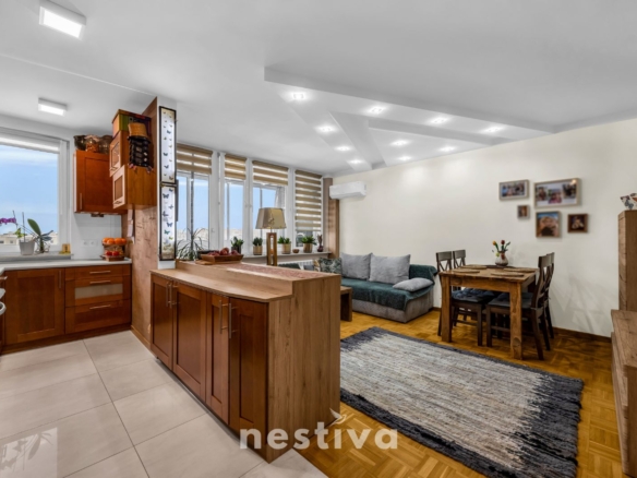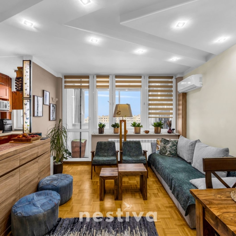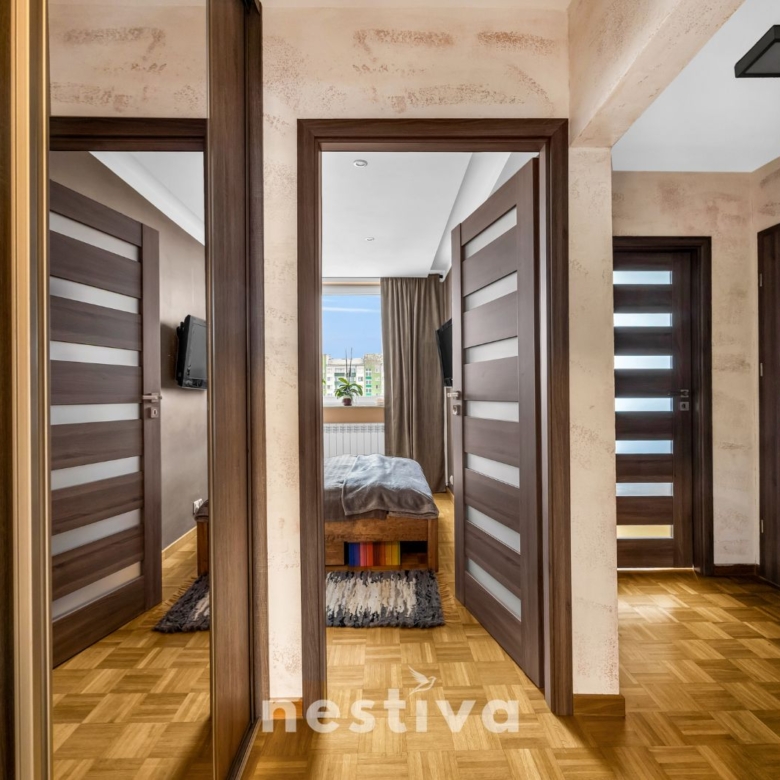 Oferuję funkcjonalne, jasne i niezwykle zadbane mieszkanie o powierzchni 53,5 m², położone na 8 (ostatnim) piętrze w budynku na warszawskich Bielanach, przy ul. Josepha Conrada.