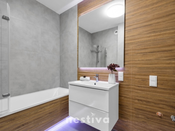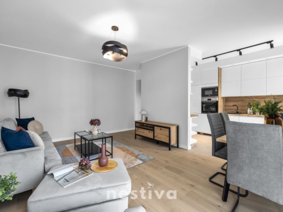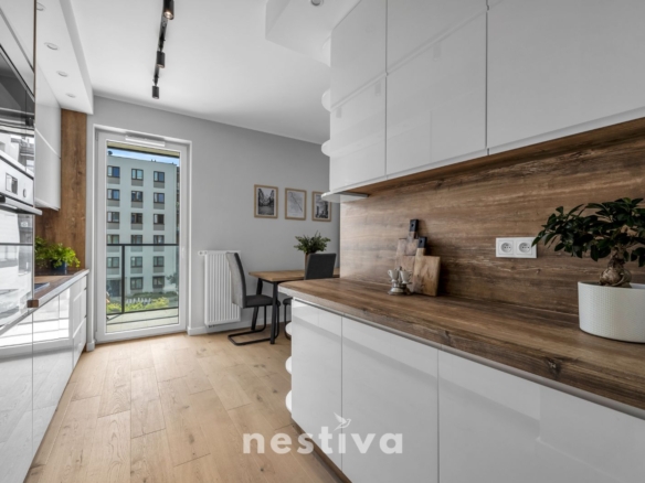 Mieszkanie usytuowane jest w nowopowstałej kameralnej inwestycji renomowanego dewelopera Spravia (Budimex).Całość inwestycji to bardzo eleganckie i ponadczasowe budynki z lokalami użytkowymi na parterze oraz przemyślanymi, funkcjonalnymi częściami wspólnymi.